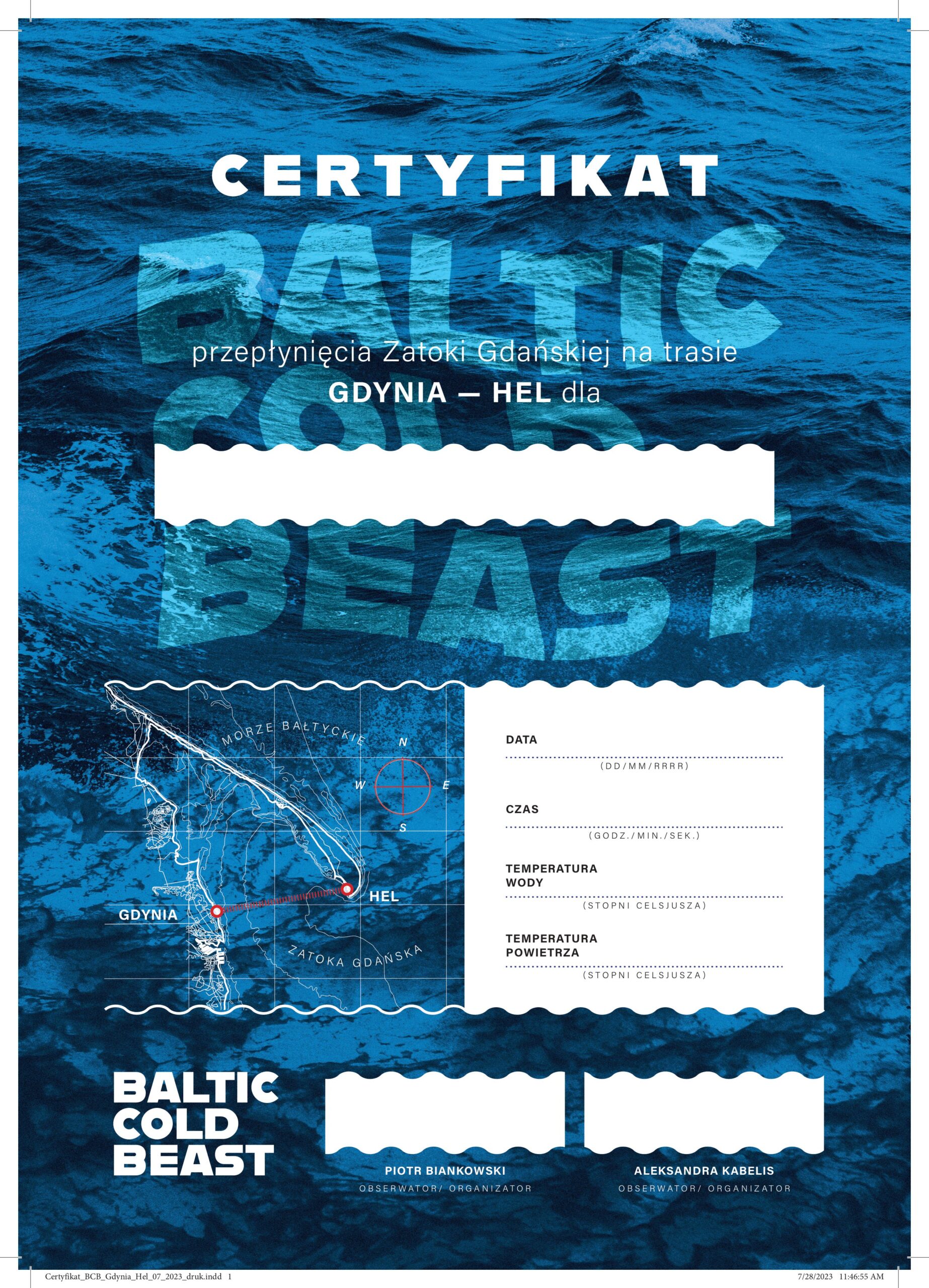 Każdy, kto ukończy jedną z tras Baltic Cold Beast, otrzymuje imienny certyfikat ukończenia wyzwania.